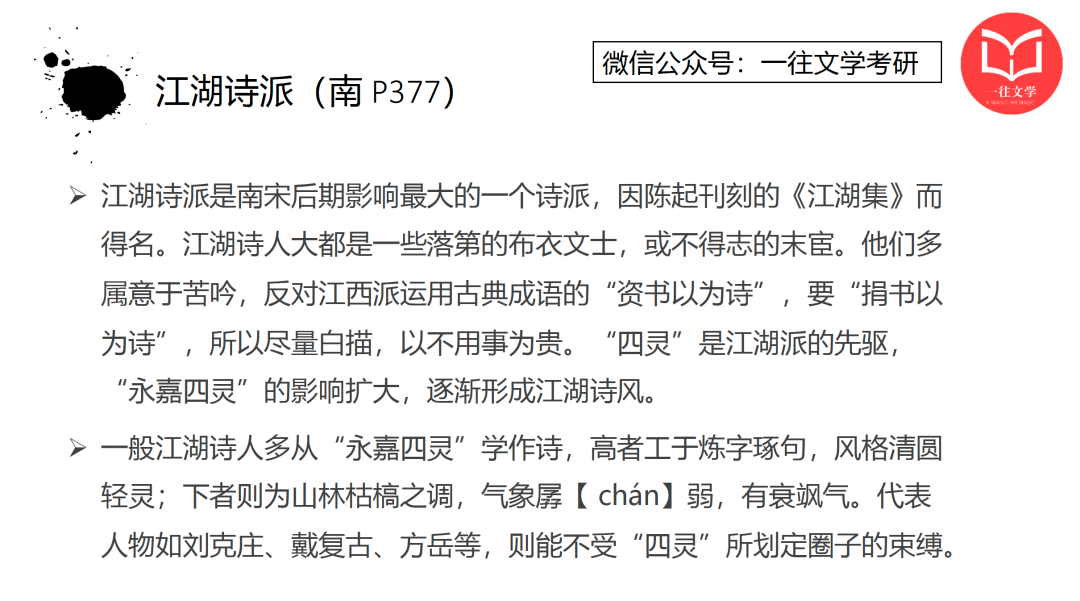 第3题:“江湖诗派”,属于诗歌流派类。北大24年也考到了这道题。同学们可以答出其中成员的身份背景、理论主张、创作风格以及代表人物。如果想扩展一下,可以评价一下其诗风特色。他们的创作风貌和“江西” “四灵”一样,未能完全摆脱模拟之风,境界不高,气度狭小是其通病。
